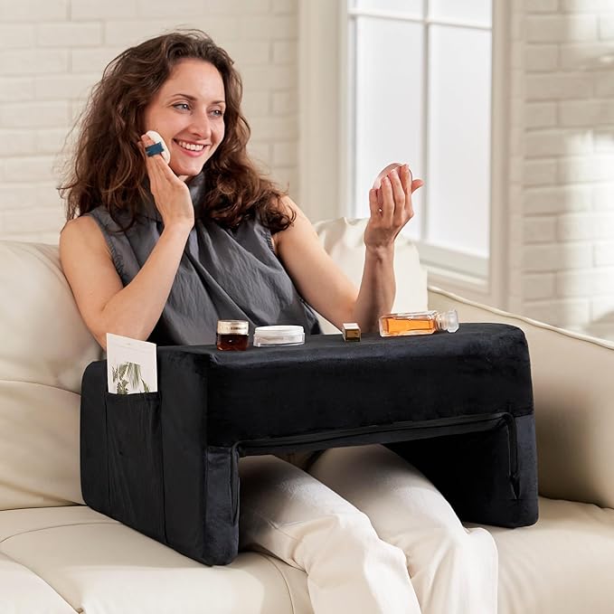 - 【Thoughtful Design】This lap pillow is designed with two large side pockets, which is convenient for you put some items, including remote, book, phone etc. Whether reading, playing, or crocheting, our adult arm rests are the best choice for you. Its lightweight and portable design allows you to take it with you wherever you go and enjoy a comfortable reading experience at any time.
