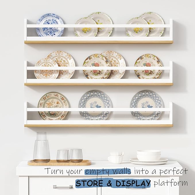 36 Inches Long Nursery Floating Shelves for Wall, Large Wall Book Shelves for Kids Room, White and Natural Haning Bookshelf for Toddlers Child Kids Bedroom Classroom Library (Set of 3)