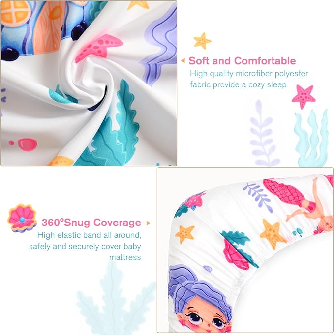 - 【Easy Care】: Simply toss this mermaids crib sheet into the washing machine on gentle cycle and it'll be as good as new. Try to avoid sun exposure, can dry it on the reverse side. The high-quality fabric ensures that standard crib sheet retains its shape, color, and softness even after multiple washes, making it a practical and long-lasting investment.