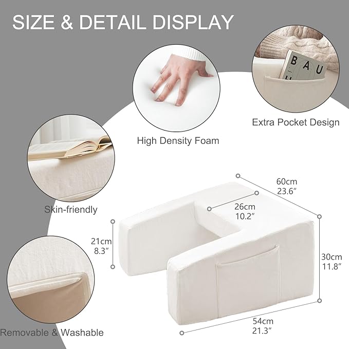 N&V Bed Rest Reading Pillows, High Density Foam Pillow for Gaming (Ivory)