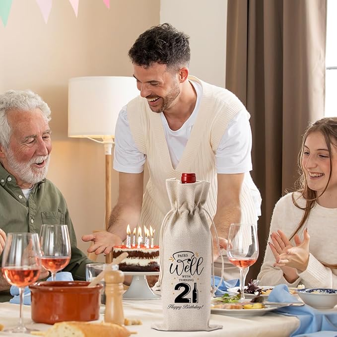 - 【21st Birthday Gifts Ideas 】Don't just stop at 21st birthday wine bag bottles! This fun 21st birthday wine bag is the perfect addition to a birthday party, and also it's a perfect gift idea, as it not only decorates the bottle, but is also suitable for storing all kinds of holiday gifts, making it a must-have item for you to celebrate all kinds of holidays and activities! Make every gathering a ritual!