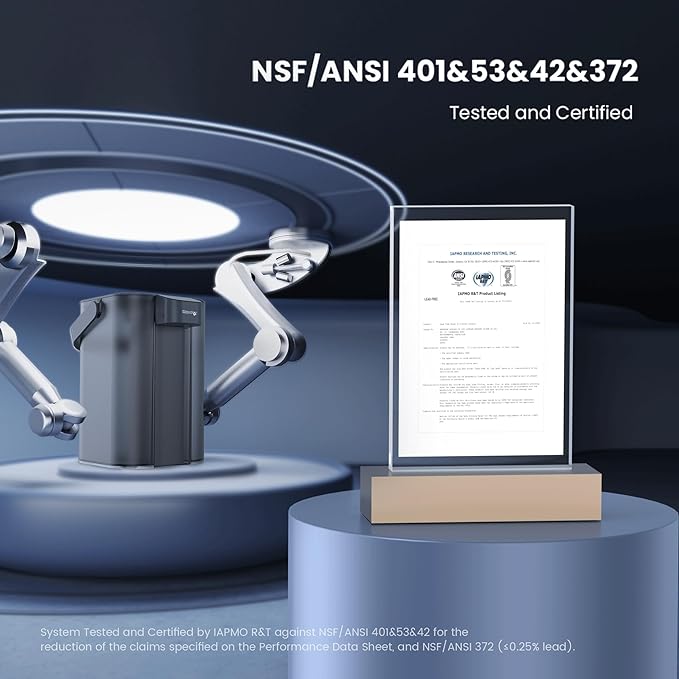 - [NSF/ANSI certified] The electric water filter pitcher WD-ED01W/WD-ED01B has been certified by IAPMO against NSF/ANSI 401, 53, 42 and 372 standards to reduce 30+ substances including chlorine, lead, microplastic, mercury, benzene and bisphenol A. Third-party lab tests confirmed its capability to reduce PFOA and PFOS, thus ensuring high-quality drinking water.