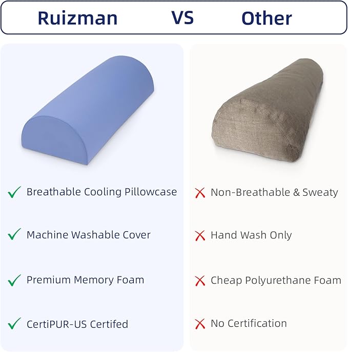 - 【High-density Memory Foam】 Our memory foam bed bolster pillow is OEKO-TEX certified, it won't go flat over time and provides optimal support and spinal alignment. It can be used as a leg bolster and under knee pillow for sleeping, enhancing your comfort and the overall sleep experience.