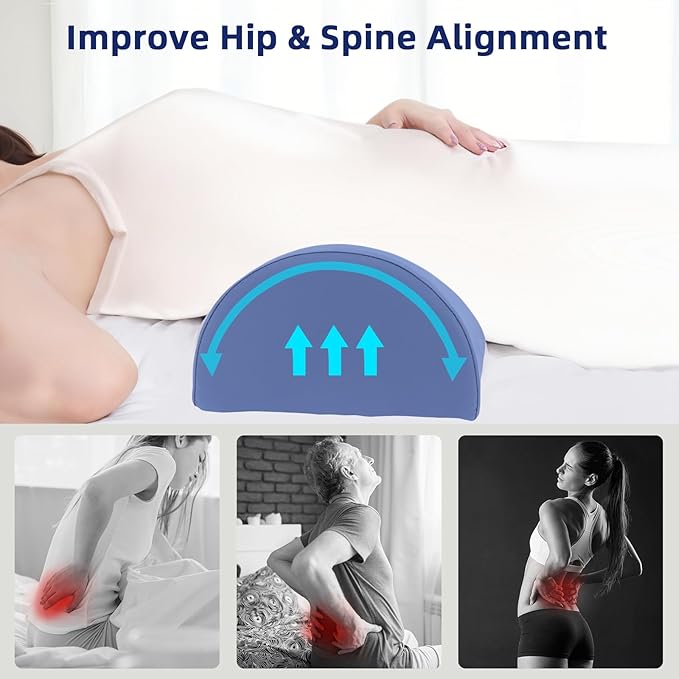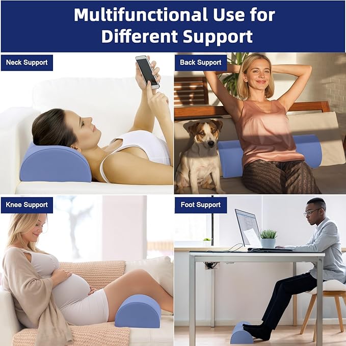 - 【 Half Moon Body Positioner Pillow】 Multi-prupose half moon pillow for back sleepers, side sleepers to provide hip pain, leg pain, and joint pain relief at night. It can be used as a comfortable lumbar support pillow for your office chair, and the the perfect armrest when lying or sitting on your couch.