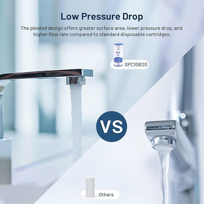 - The SPC10B20 pleated polyester sediment filter is an economically priced and highly effective solution that reduces sediment, dirt, scale, and rust particles down to 20 microns from both city and well water applications.
