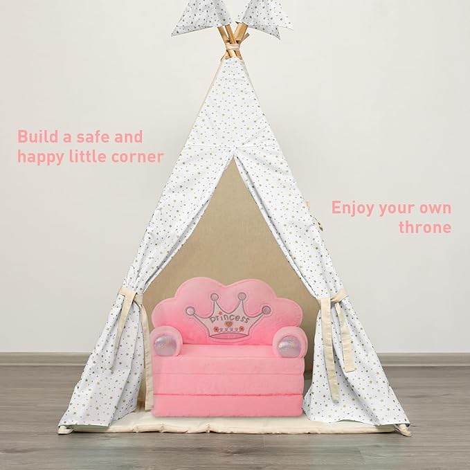 - ABOUT FABRIC: The fabric of the sofa is made of imitation rabbit fur fabric; which is soft and breathable; The sofa's crown look and sparkling embroidery design will be a hit with your little girl
