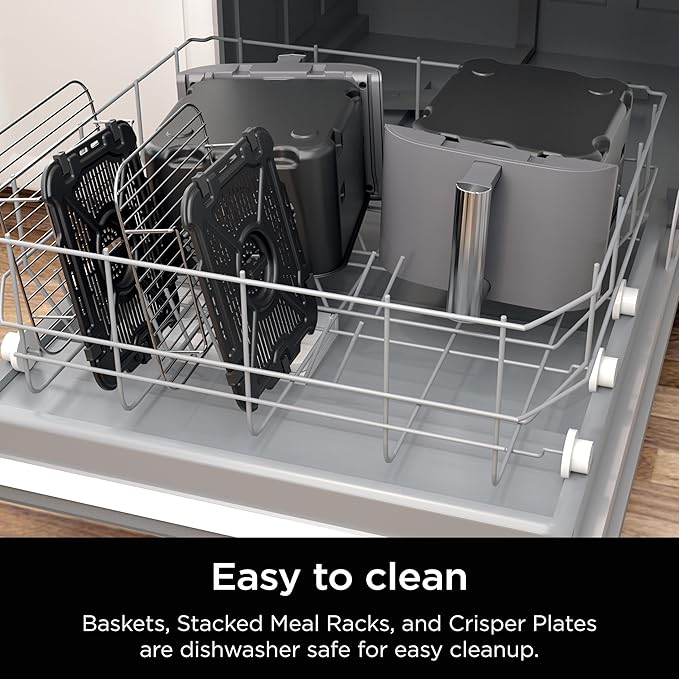 - DOUBLESTACK AIR FRYING TECHNOLOGY: Only Ninja’s stacked design has 2 independently controlled baskets so you can cook 4 foods at once.