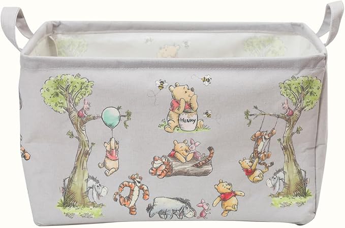 Winnie Storage Nursery Basket, Large Square Canvas Laundry Hamper With A Waterproof PE Coating, Foldable, Bathroom and Bedroom Set, Clothes ,Toys Bin, Baby Nursery Hamper Decor(Grey)