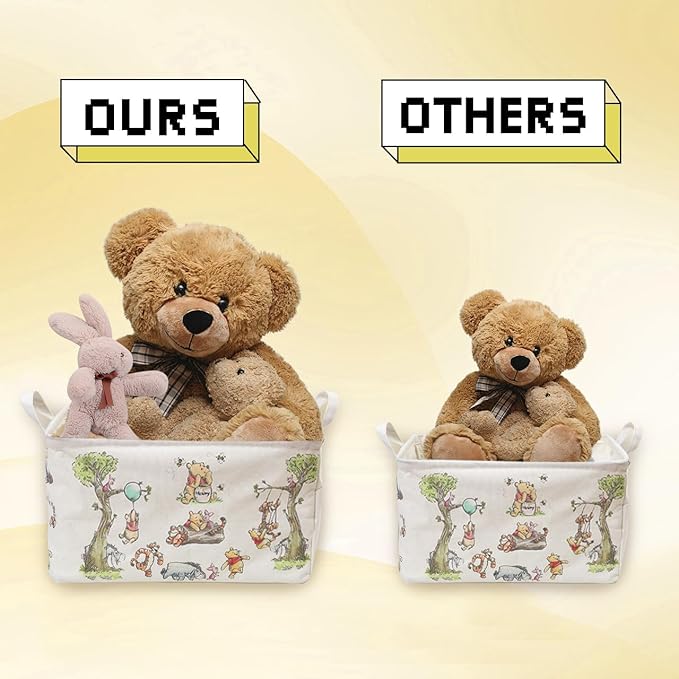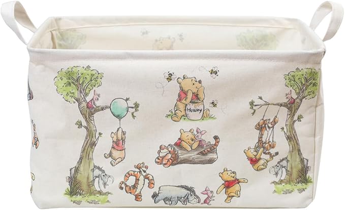 Winnie Storage Nursery Basket, Large Square Canvas Laundry Hamper With A Waterproof PE Coating, Foldable, Bathroom and Bedroom Set, Clothes ,Toys Bin, Baby Nursery Hamper Decor(White)