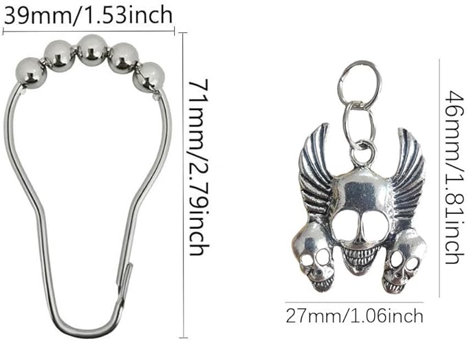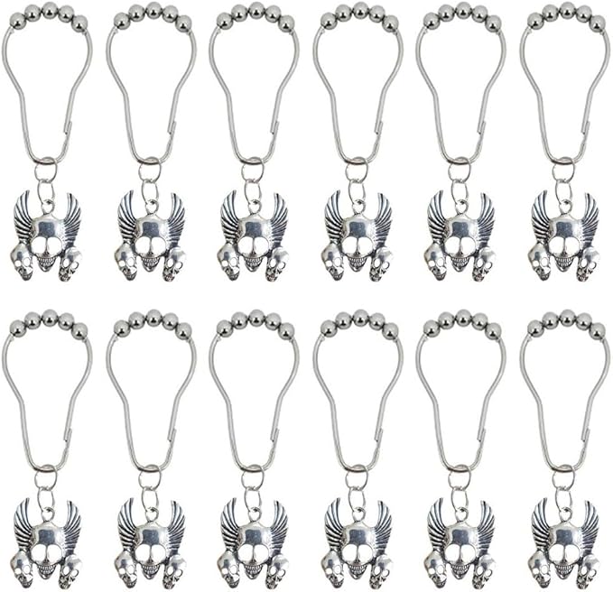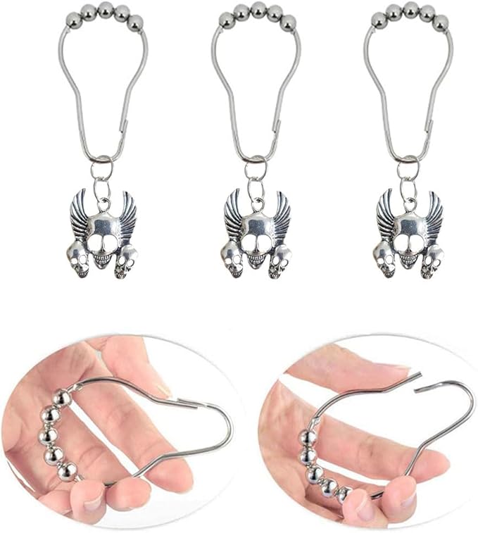 - RELIABLE QUALITY - Our rustproof shower curtain hook rings are made of high quality stainless steel, stainless steel is more rustproof and durability than ordinary metal shower curtain hooks. It can be used for many years in a wet bathroom. Skull decorative hangers are made of zinc alloy