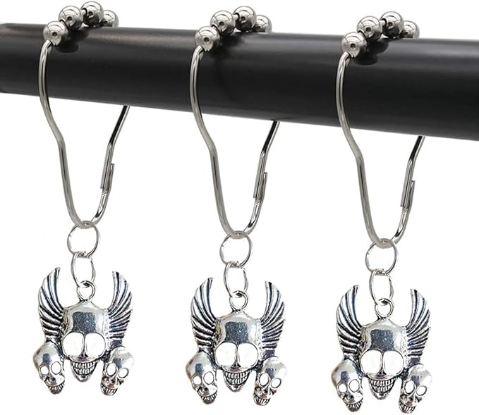 - MULTIPURPOSE - Very unique triple skull decorative shower curtain hooks design, suitable for bathroom, living room, reading room, bedroom, curtains or outdoor patio and other curtains shower curtains