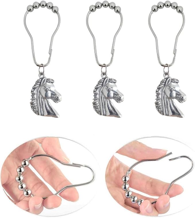 - MULTIPURPOSE - Very unique western shower curtain hooks horse head trim design, suitable for bathroom, living room, children's room, reading room, bedroom or outdoor patio curtains
