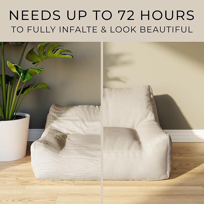 - Let It Unfold & Make Your Kids Eyes Sparkle: For a simplified transport, the chair is vacuum-packed. Once unboxed, give it up to 48 hrs to expand to its final shape, quickly assemble by putting the cover over the bag - and watch your kids’ heartwarming anticipation