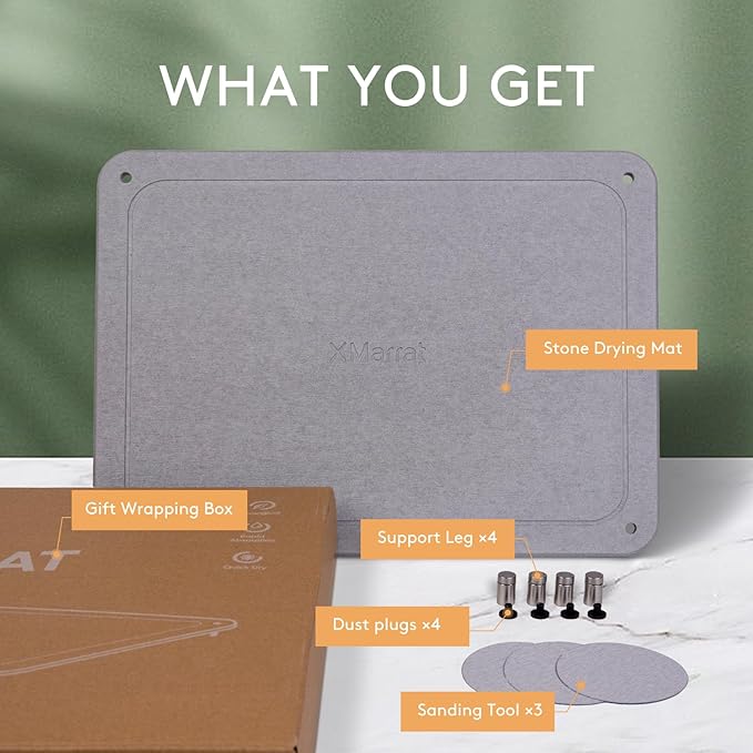 - Super Absorption: Try the stone dish drying mat from XMarrat, a fast-drying stone mat for your kitchen. Made from natural diatomaceous earth, it quickly soaks up water and dries out fast. Keep your kitchen counters, drawers, and floors dry, clean, and free from leaks, bacteria, and odors.