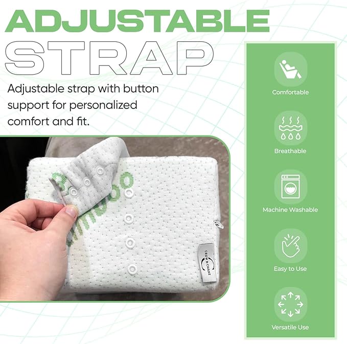 - Special Feature : Firm Memory Foam Pillow for Optimal Ergonomic Benefit, Removable Machine Washable Cover, Adjustable Strap - Comfortable Fit for all Sizes Firm Memory Foam Pillow for Optimal Ergonomic Benefit, Removable Machine Washable Cover, Adjustable Strap - Comfortable Fit for all Sizes