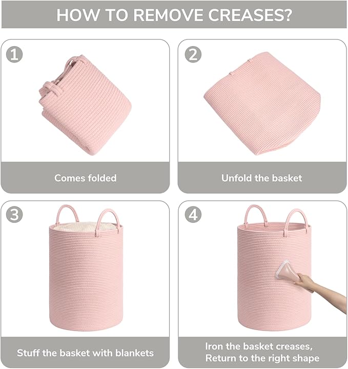 - Basket with Handles: Our large basket comes with two handles, making it easy to move from room to room. These rope laundry hampers are safe for both kids and pets. They are soft, making them foldable and easy to store