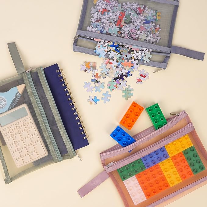 - Great Value Package: Each set includes 10 pouches, contains 5 different color pouches. The Breathable Mesh zipper pouch bags with double-layer transparent mesh pockets, one layer can hold instruction books, and the other can store puzzle pieces.