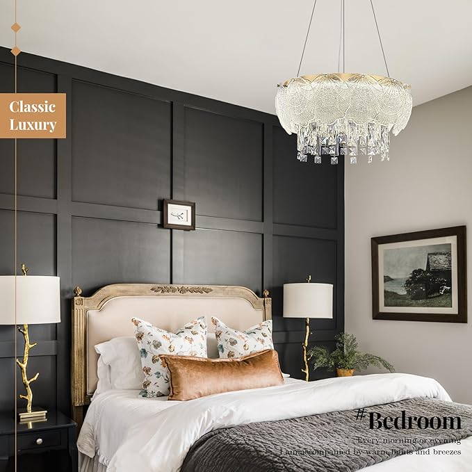 - 【Elegant Gold Finish】- Caraluxe gold bedroom chandelier, with its round design and gold finish, adds a touch of elegance and sophistication to the room.This gold round chandelier makes your home feel more inviting and stylish.