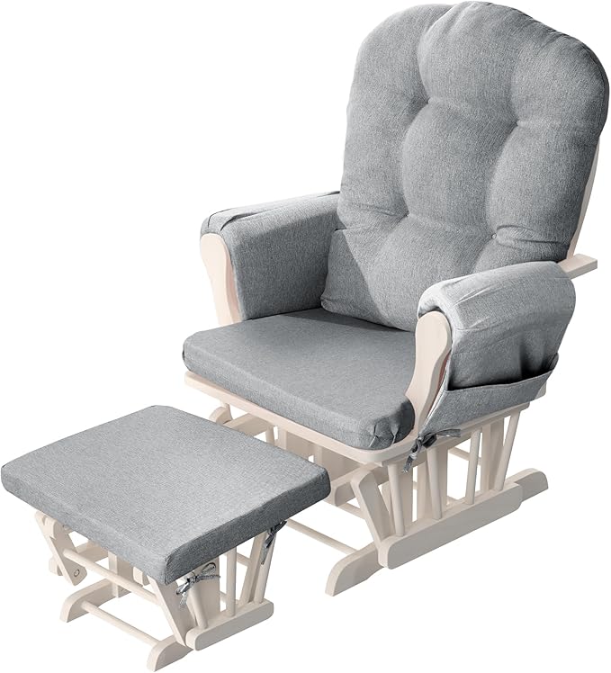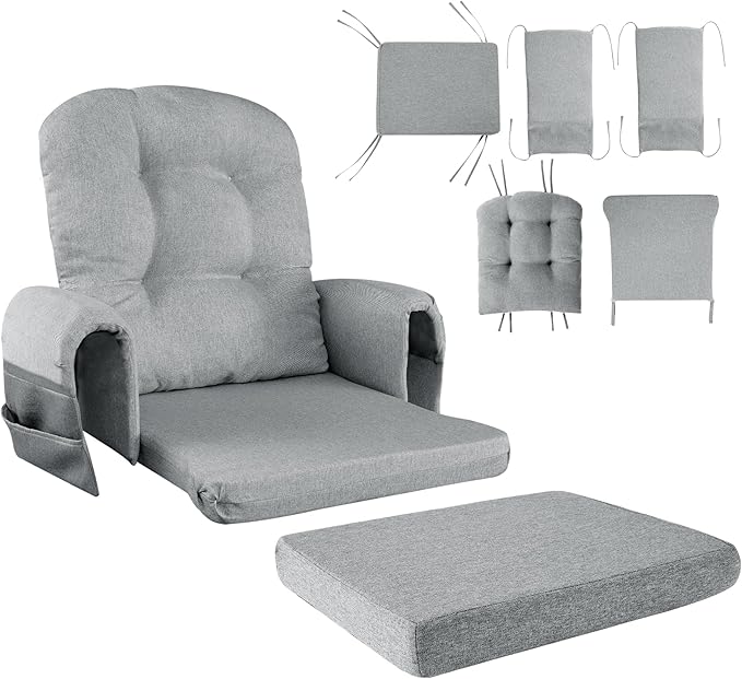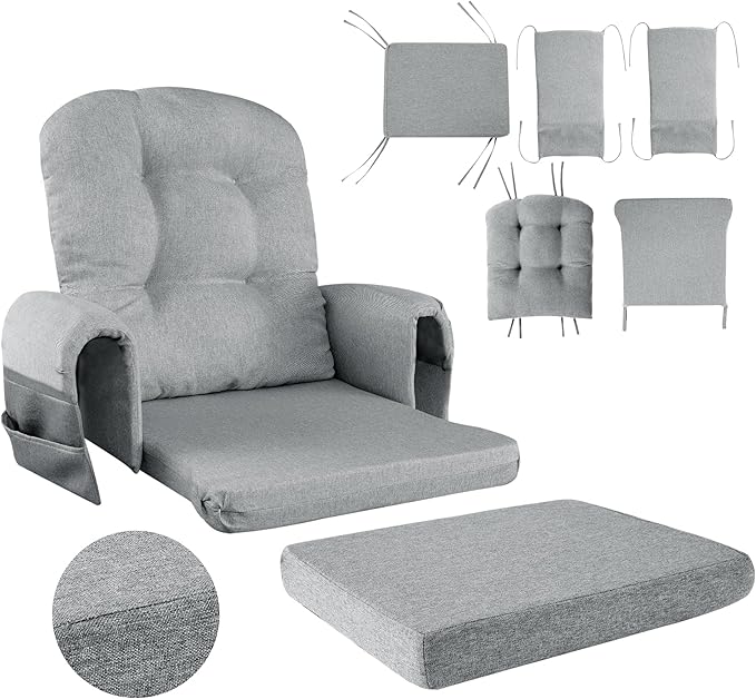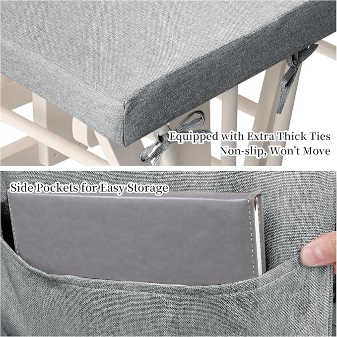 HOMBYS 5 PCS Glider Rocker Replacement Cushions with Storage Side Pocket,Linen-Like Fabric, Foam & Microfiber Filling, Non-Slip & Washable,Thickened & Supportive for Glider Rocking Chair, Grey