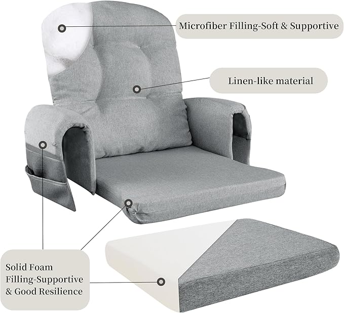 - 【Convenient Storage and Easy Assemble】2 large-capacity side pockets are designed on the armrest for convenient storage, books, toys, magazines,TV remotes and other small items, just enjoy your leisure time without any worries. Sturdy ties are designed to keep the cushions in place and avoid accidental sliding. The cushion cover is removable for easy cleaning, machine washable.