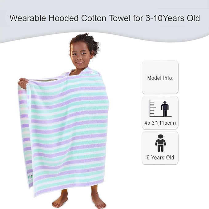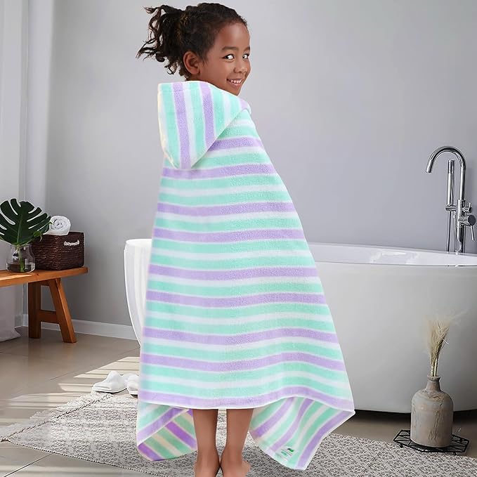 VOOVA & MOVAS Kids Hooded Bath Towels Quick Dry - (3-10Years) - Absorbent Lightweight Hooded Cotton Towel for Pool | Swim | Beach | Bath, Boys Wrap Towel with Hood, Aqua Purple Stripe