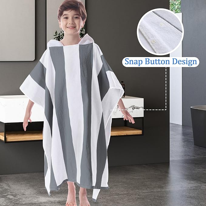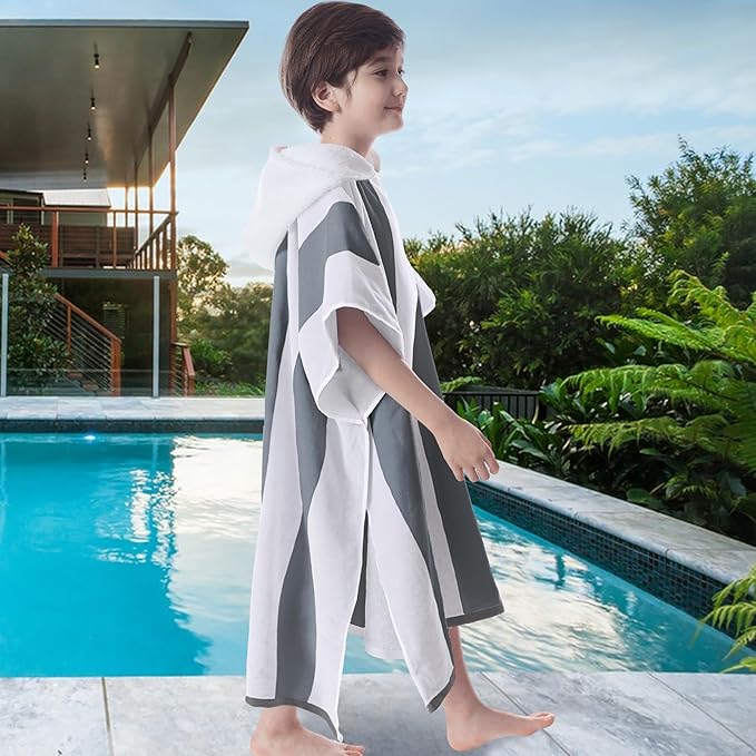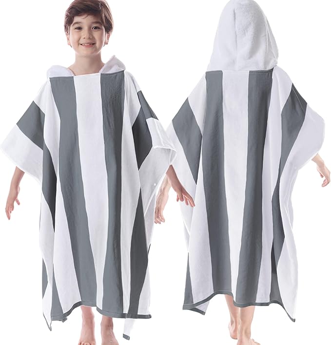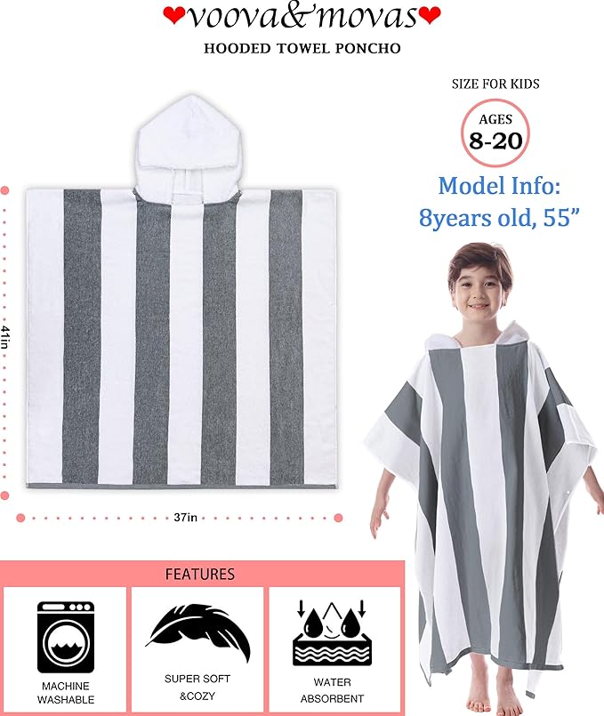 VOOVA & MOVAS Teens Hooded Towel - Teens Hooded Pool Towel Robe (8-16Years), Large Absorbent Cotton - Versatile for Beach, Pool, Swim, and Bath,Dark Gray Stripe