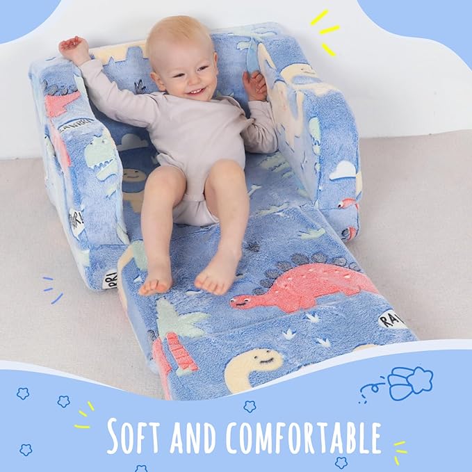 Thick Comfy Toddler Chair and Couch for Kids,2-in-1 Soft Plush Fold Out Sofa for Children,Convertible Couch to Lounger for Toddler
