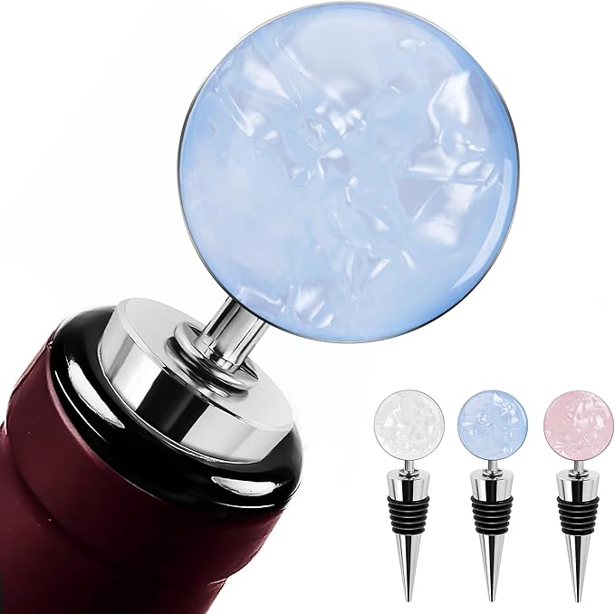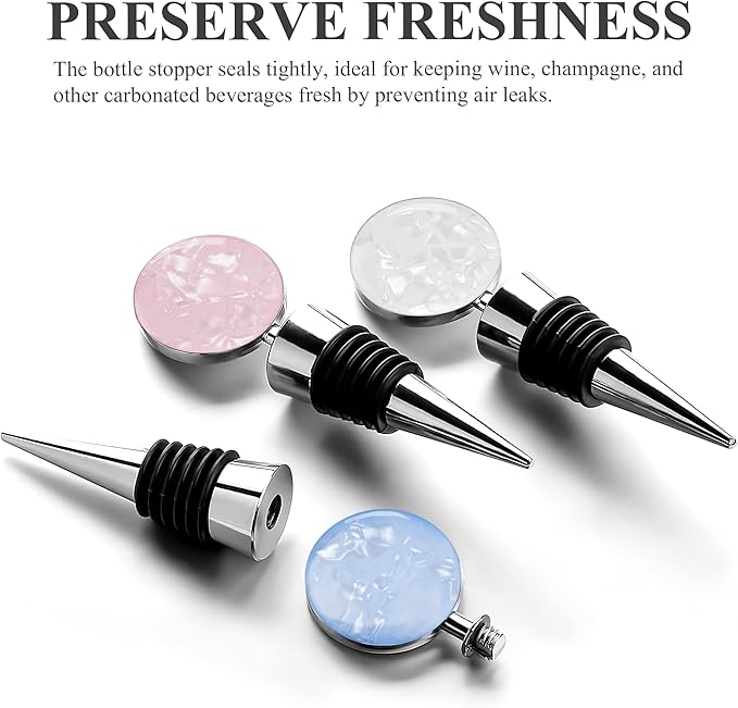 - Wine bottle stoppers feature a round shaped of topper with some designs, a plated shaft and flexible rubber gaskets,different patterns that is a great way to help you or your guest spot which bottle is which on the party or gathering.
