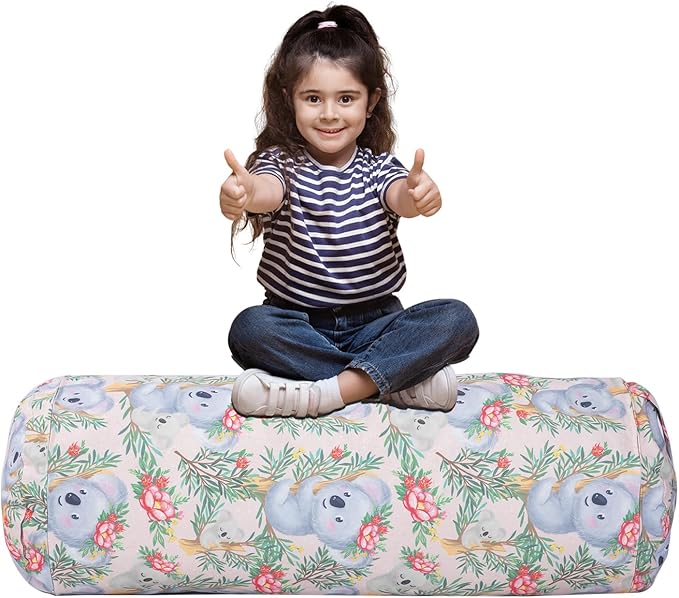 Stuffed Animal Bean Bag Storage Chair for Kids Cover Only (No Filler), Organize, Sit, Play & Boxing, 100% Cotton Canvas Washable, Ultra Soft Cylinder Long Vertical Zipper Best Gift for Child