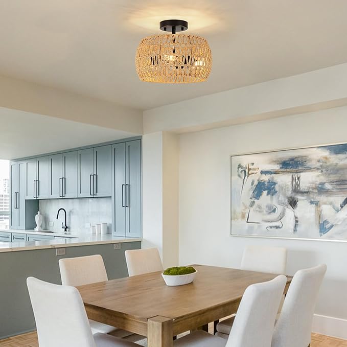 - Ideal for a Variety of Styles: The versatility of the rattan ceiling lamp makes it ideal for any home decor, from coastal to bohemian and rustic. Can be used as a bedside shade, in entrance hall, nursery, over a kitchen island, dining table and patio