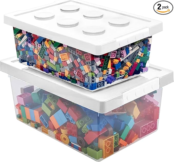 - ❤PERFECT DESIGN - Our toy storage bins are designed with compatible building base plates and lids. You can stack boxes of the same size like building blocks without sliding. Each lid is fastened tightly to the container through a snap design. The transparent container is clear at a glance, making it easy to distinguish different toys. Cultivate the habit of storing babies from an early age.
