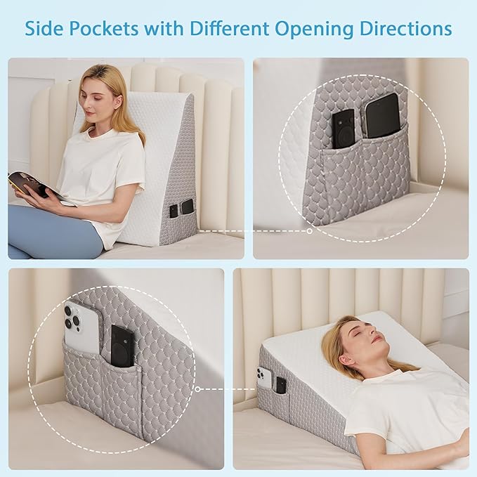 - 【Portable Handle for Easy Portability】: The back of the wedge pillow for back pain relief features a convenient external handle, which makes moving the sleeping wedge pillow for adults easy wherever you need it.