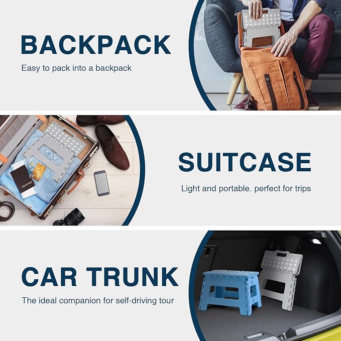 - Upgraded & Certified Design Small Step Stool: Our foldable step stool has been upgraded and certified by EN 14183 requirements, and all our products are completely safe for both children and adults to use. Made to Dyforce standards, this step stool folding is made of tough and durable heavy-duty plastic for long-lasting durability.