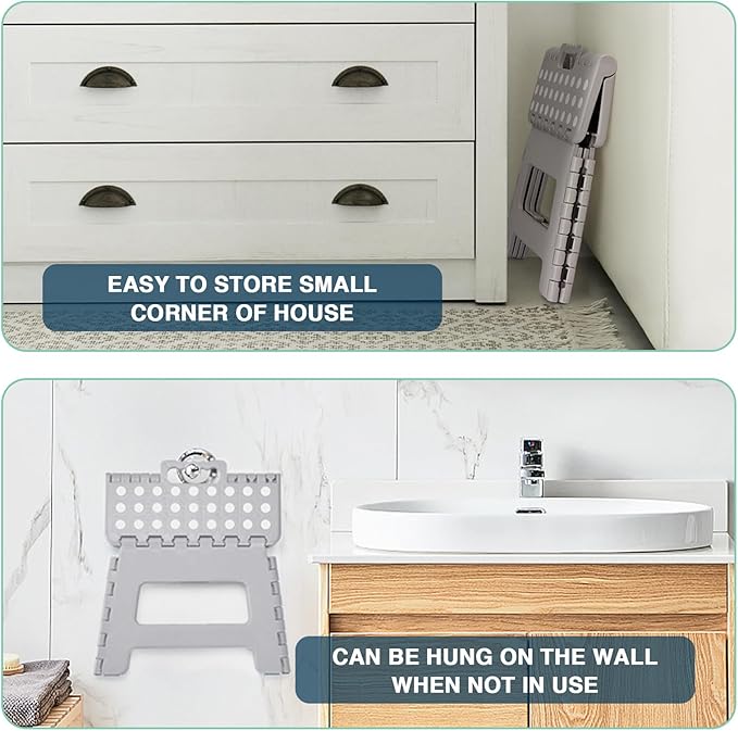 Folding Step Stool 9", Kids Step Stool, Heavy Duty Step Stools for Adults, Compact Foot Stools, Light-Weight Toddler Step Stool for Kitchen, Bathroom, Holds Up to 300 lbs (Grey)