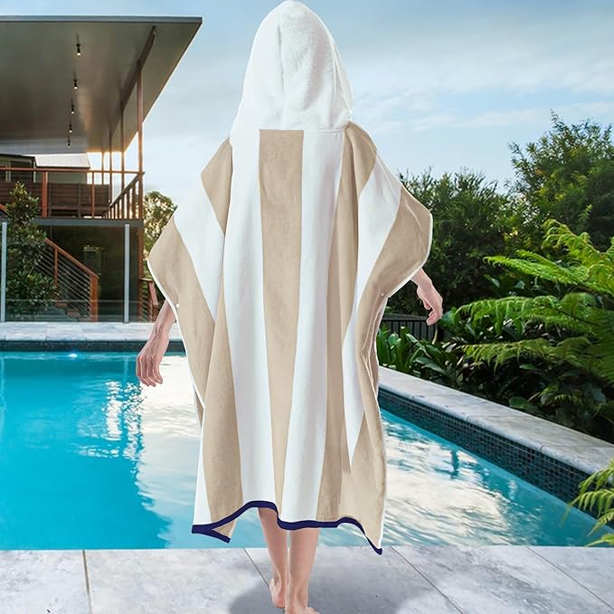 - Timeless Elegance:Our Cabana Striped hooded towel showcases a stylish and timeless design, With its refined simplicity and jacquard process, this towel effortlessly complements any beach or pool outfit, adding a touch of sophisticated elegance to your summer style