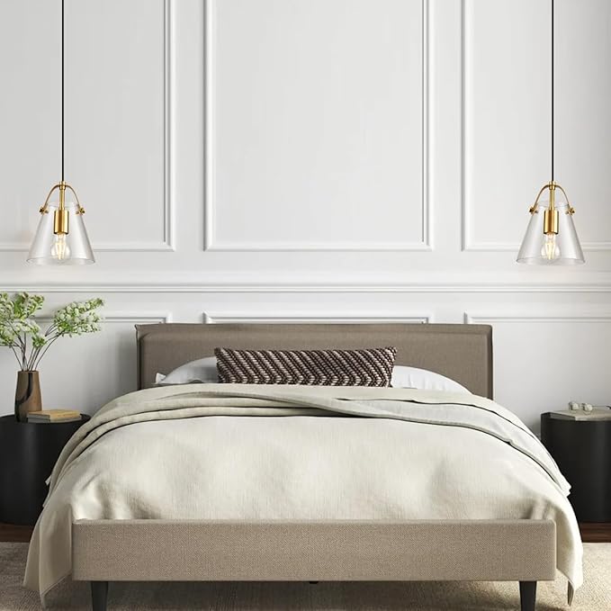 - Bulbs and Warranty - Brass pendant light fixture comes with glass shade that has a diameter of 7" and a height of 8" compatible with most standard medium base E26 bulbs.Picture shows A60 LED bulb effect which is highly recommened.Dimmable when used with compatible dimmer switch.Smart bulbs works well.Any questions,our customer support team is here to help in 24 hours