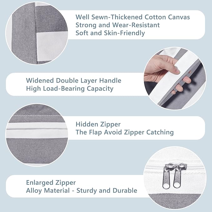 - [Thick Canvas Made of 100% cotton- Soft and Skin Friendly] - Our stuffed animal storage bag is made of strong, soft and comfortable cotton canvas with reinforced seams that are top stitched, providing a nicer finished look. Children can safely access and store their beloved stuffed animal and toys.