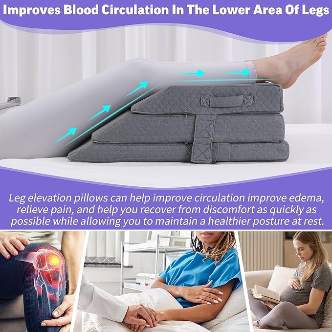 - 【MULTIPURPOSE BODY PILLOW 】- Our leg wedge pillow for elevation helps improve blood circulation, take excess pressure off the legs, stimulate the various pressure points, and much more. Can be used on your couch, car seat, and other places to prop up your legs or neck and other body parts