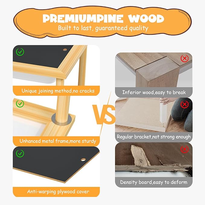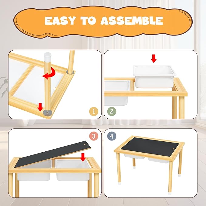 - [Easy Installation & Maintenance] Assemble your child's new sensory tables in under 5 minutes with our straightforward assembly process. For optimal assembly, avoid keeping the legs at a 90° angle to the tabletop during installation to ensure the screws tighten correctly. The table also features a removable top, transforming it into a sensory play area for water and sand games, making it easy to clean and maintain