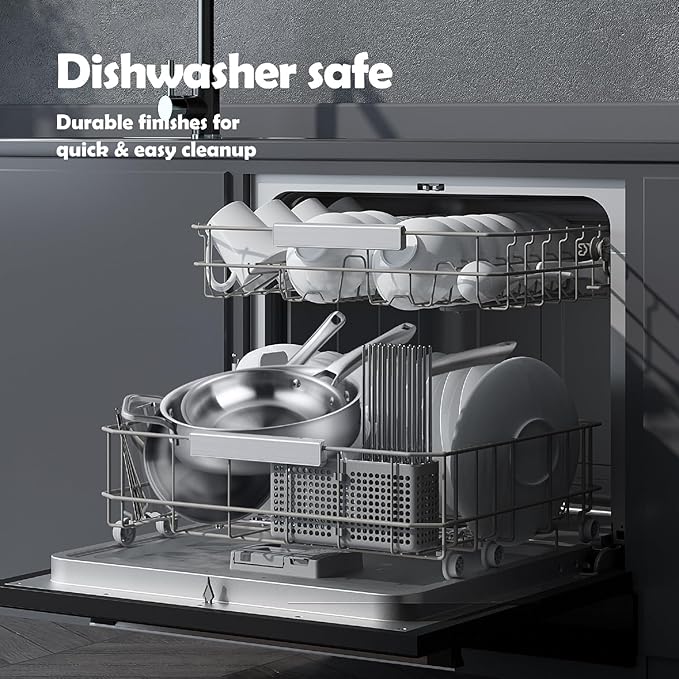 - 【TRI-PLY STAINLESS STEEL】Chefmate Tri-Ply Stainless Steel Pan Combines Ergonomic kitchenware Design and superior features for better cooking performance. Stainless steel surface doesn't react with food or alter flavors.