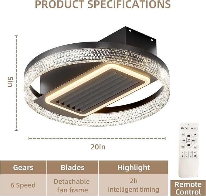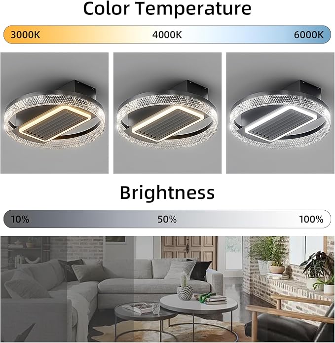 - Dimmable Lighting: The ceiling fan lights can be switched between white light, neutral light and warm light through the remote control. You can adjust the brightness to your desired level.