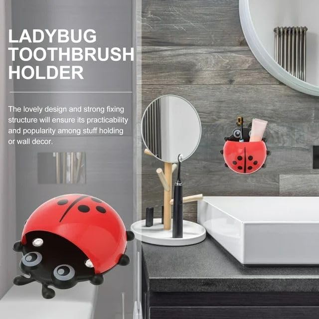 Red Toothbrush Holders,Cute Seven-Star Ladybug Toothbrush with Suction Cup No Drill Insect Shape Toothbrush Holder for Kids Bathroom Powerful Suckers Bathroom Accessories Holders and Dispensers