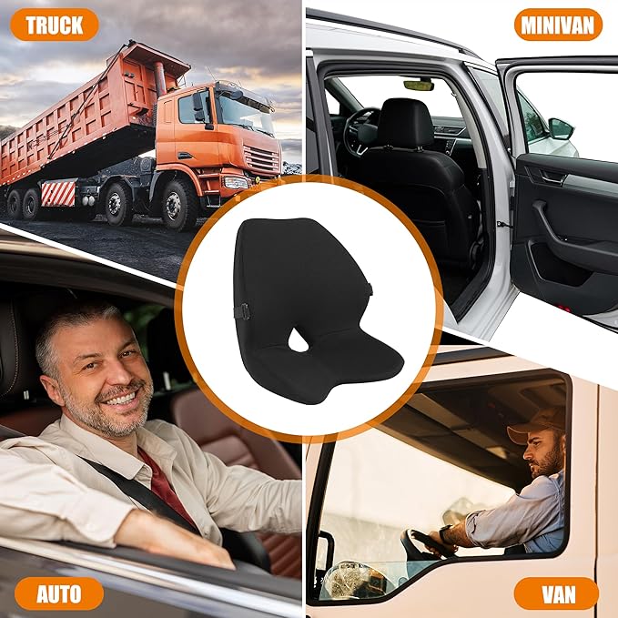 - 【Effective Reduce Discomfort】This car cushion for driving are ergonomically designed, suspends your tailbone, increase tailbone support, thereby reduce the pain of pressure on your tailbone and lower back. It helps to improve your driving posture and increase comfort.