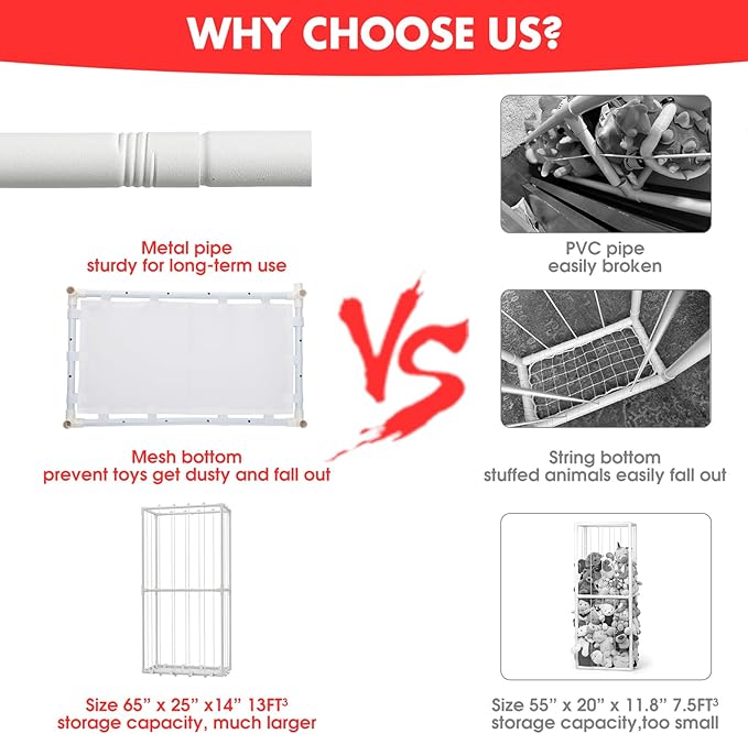 - BUILT TO LAST: The stuffed animal zoo storage is made of stainless metal to ensure long-term durability. Unlike other cheap PVC plushie stuffed animal net style, our plush storage is more sturdy and not easily deformed. Its sturdy construction and rounded corner design make sure it won't tip over and harm children or pets.