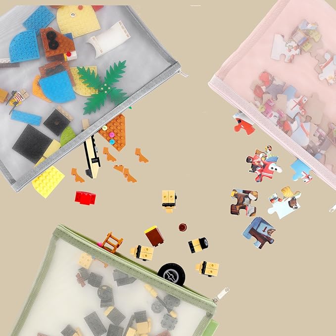 - Neat and Organized: The Breathable Mesh zipper pouch bags with double-layer transparent mesh pockets, one layer can hold toy manuals, and the other can store toy pieces. Each set of toys has its own dedicated bag. Toy storage bags help maintain a clean and organized home, reducing the feeling of chaos. This is particularly important for households with children, as it allows for quick and orderly storage of toys, avoiding clutter in hallways and rooms.