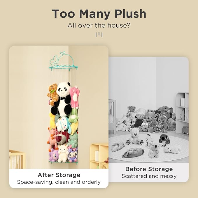 - 【Practical Plush Animal Room Decor】The stuffed animal storage is designed with style and functionality in mind, making the plush toys well-organized and cute when hung up. It is a beautiful room decoration. Perfect for nursery, preschool, playroom, bedroom, kids room, living room and small space.
