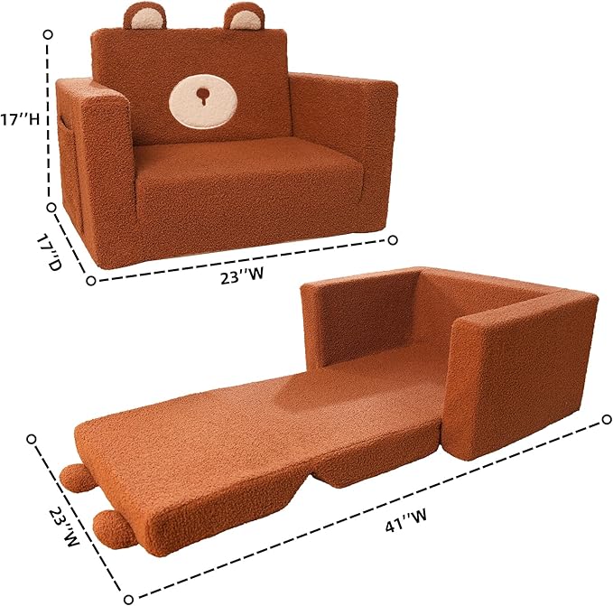 - CONVERTIBLE 2-IN-1 DESIGN: This flip-open toddler couch converts to a lounger/sleeper | Ideal for reading, relaxing, playing, or sleeping, your child will enjoy this kids couch with siblings/friends | Recommended for ages 18 months+ | Perfect as a mini couch or toddler sofa for any space.