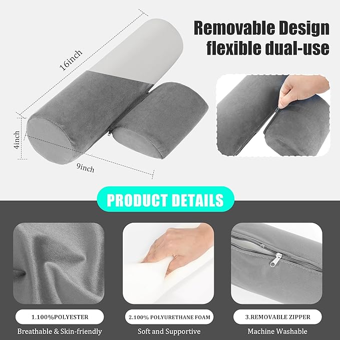 - 【2-in-1 Cervical Pillow】This pillow is different from traditional pillows in that it combines a rolling neck pillow and a head pillow in one. It can support the neck and gently stretch the cervical vertebrae. The head pillow can be used over the shoulder or folded up to adjust the height of the neck pillow, which can be disassembled and separated for separate use.