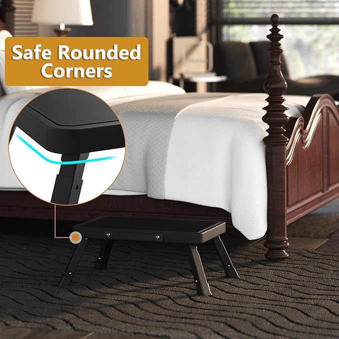 Folding Step Stool for Adults Kids, Heavy Duty Height-Adjustable Foldable Stepping Stool with Non-Slip Platform,Collapsible Foot Step Stool for Bathroom Bedroom Kitchen RVs with 500 LBS Capacity,Black