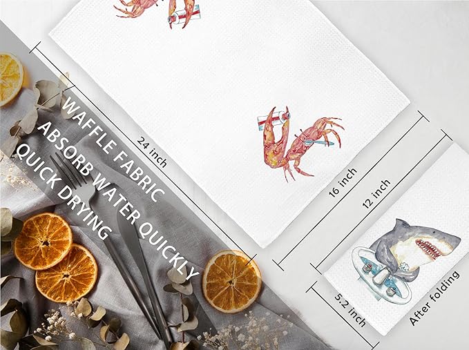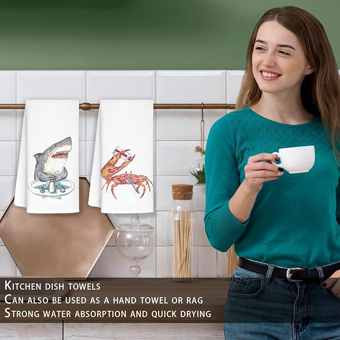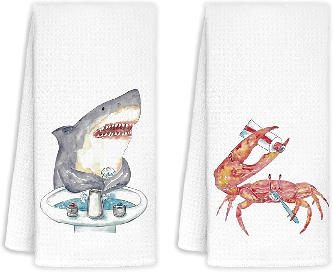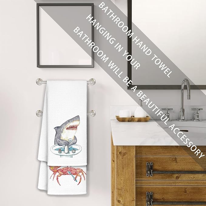 Funny Shark Crab Bathroom Hand Towels Set of 2 - Shark Bathroom Decor, Crab Decor, Wash Your Hands Bathroom Decor, Shark Gifts for Shark Lovers Women, Crab Gifts, 16x24 in